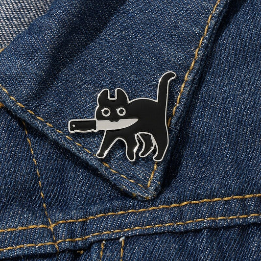 Cute Black Cat Pop-Enamel Pin Lapel Badge for Clothes